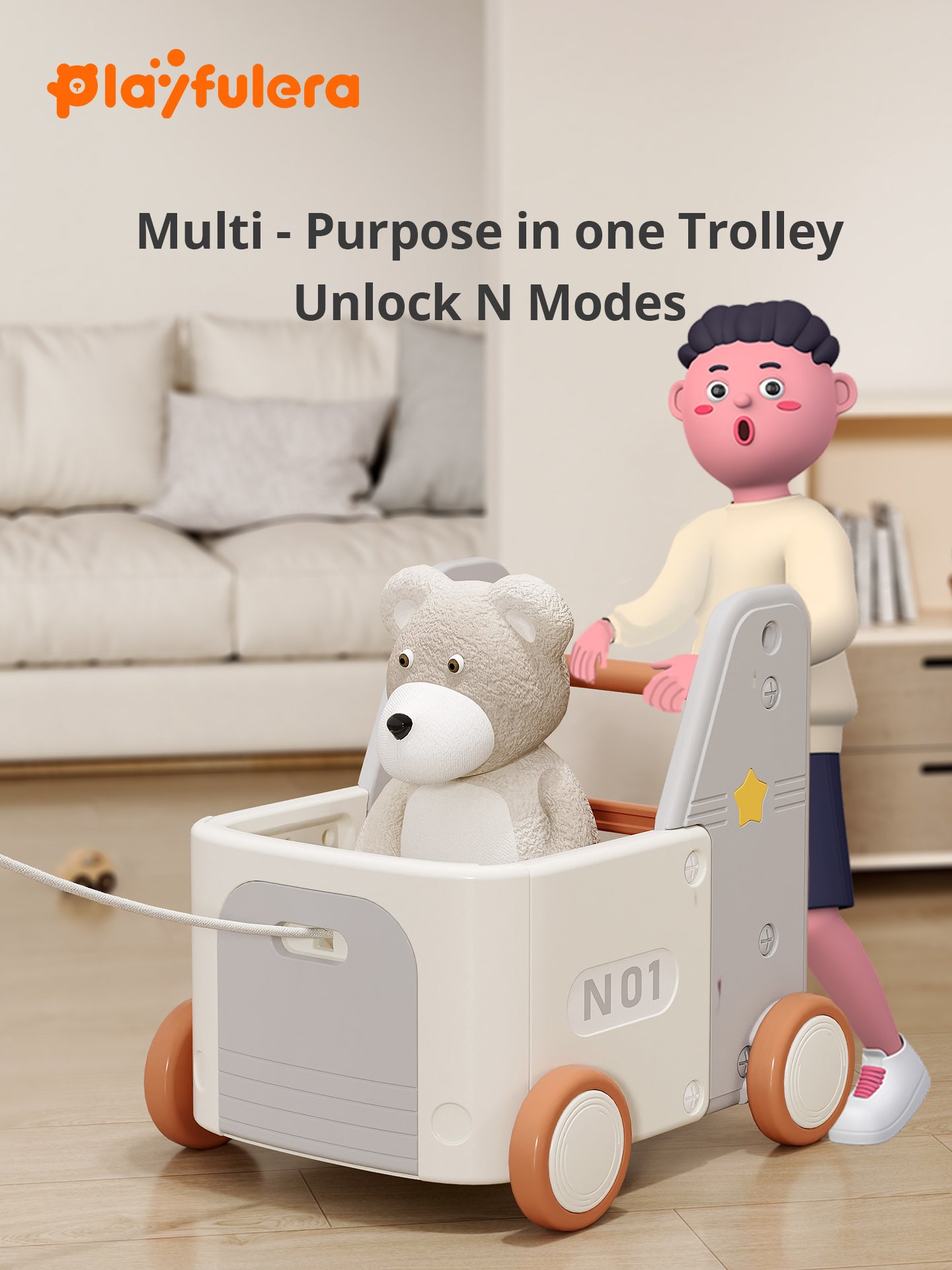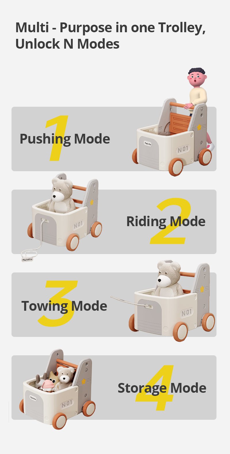 The 4-in-1 Pickup Truck Walker & Wagon grows with your child! It’s a sturdy walker, a fun ride-on, a pull-behind wagon, and a practical toy hauler, all designed as a tough little pickup for endless adventures.