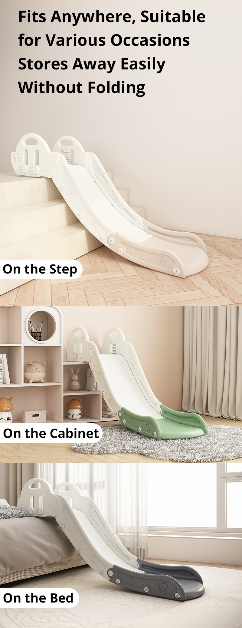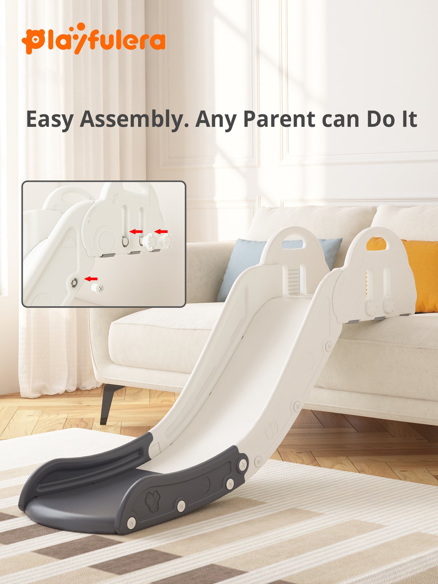 The Beetle-Shaped Buddy Indoor Toddler Slide creates instant play opportunities anywhere in your home. This innovative slide needs no complicated setup. Simply place it against your couch, bed, or step. Immediate fun begins!