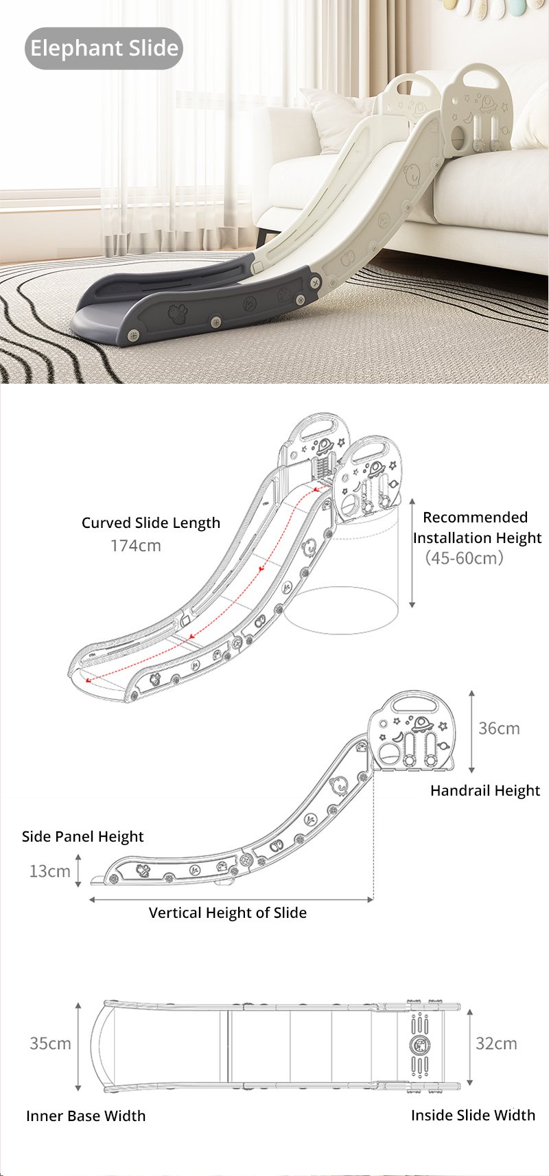 Jumbo Elephant Easy-Climb Kids Slide for Indoor Play