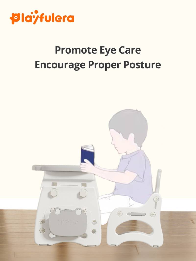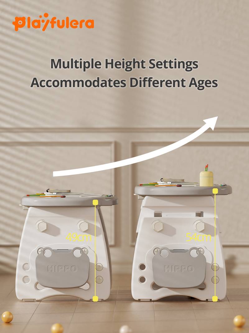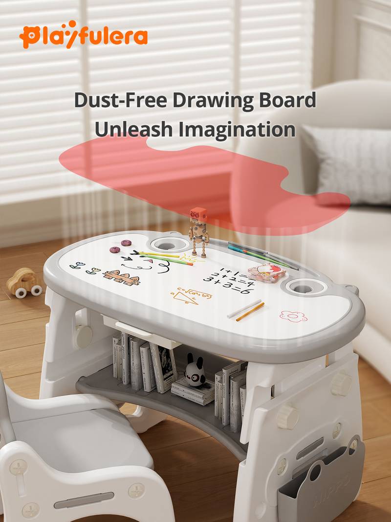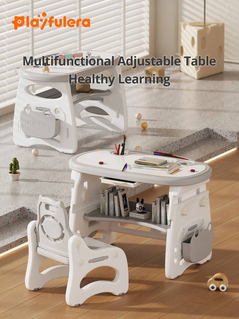 Hippo-Shaped Kids Study Desk & Chair Set – Adjustable Height + Doodle/Non-Doodle Top Option for Ages 1-6 (4 Colors: Green/Pink/Blue/Gray)