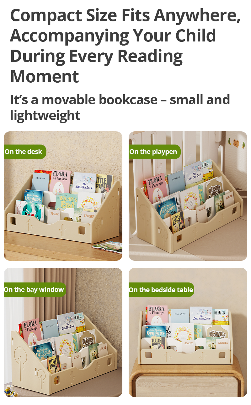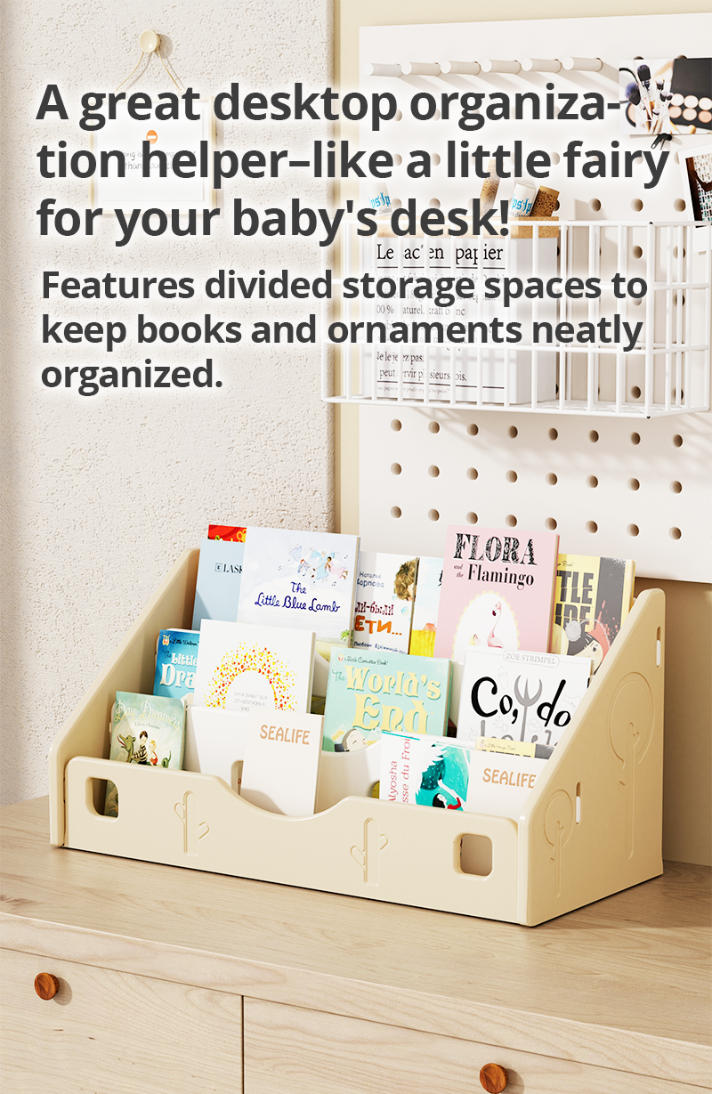 Keep your kid’s room tidy with our low-profile storage rack! It neatly displays picture books and small toys on windowsills or desks, and you can choose a space-saving single-sided or a versatile double-sided design.