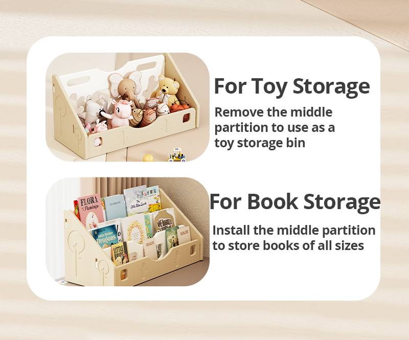 You can also choose the ideal style for your room layout. Select the single-sided version for placement against a wall. Alternatively, the double-sided design beautifully showcases books from both angles in an open space. This handy shelf effectively combines storage and display functions in one cute, space-saving unit. It helps maintain a tidy room while allowing your child’s personality to shine through.