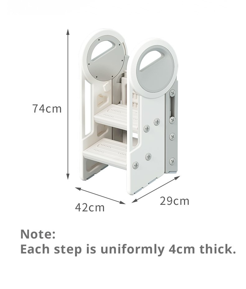 Furthermore, the stool folds completely flat for compact storage, saving valuable space when not in use. Despite its lightweight design, it securely supports up to 80KG. This combination of safety, functionality, and engaging design encourages toddlers to safely wash hands, access shelves, and participate in family activities. It is the ideal tool for building confidence and self-reliance in young children.
