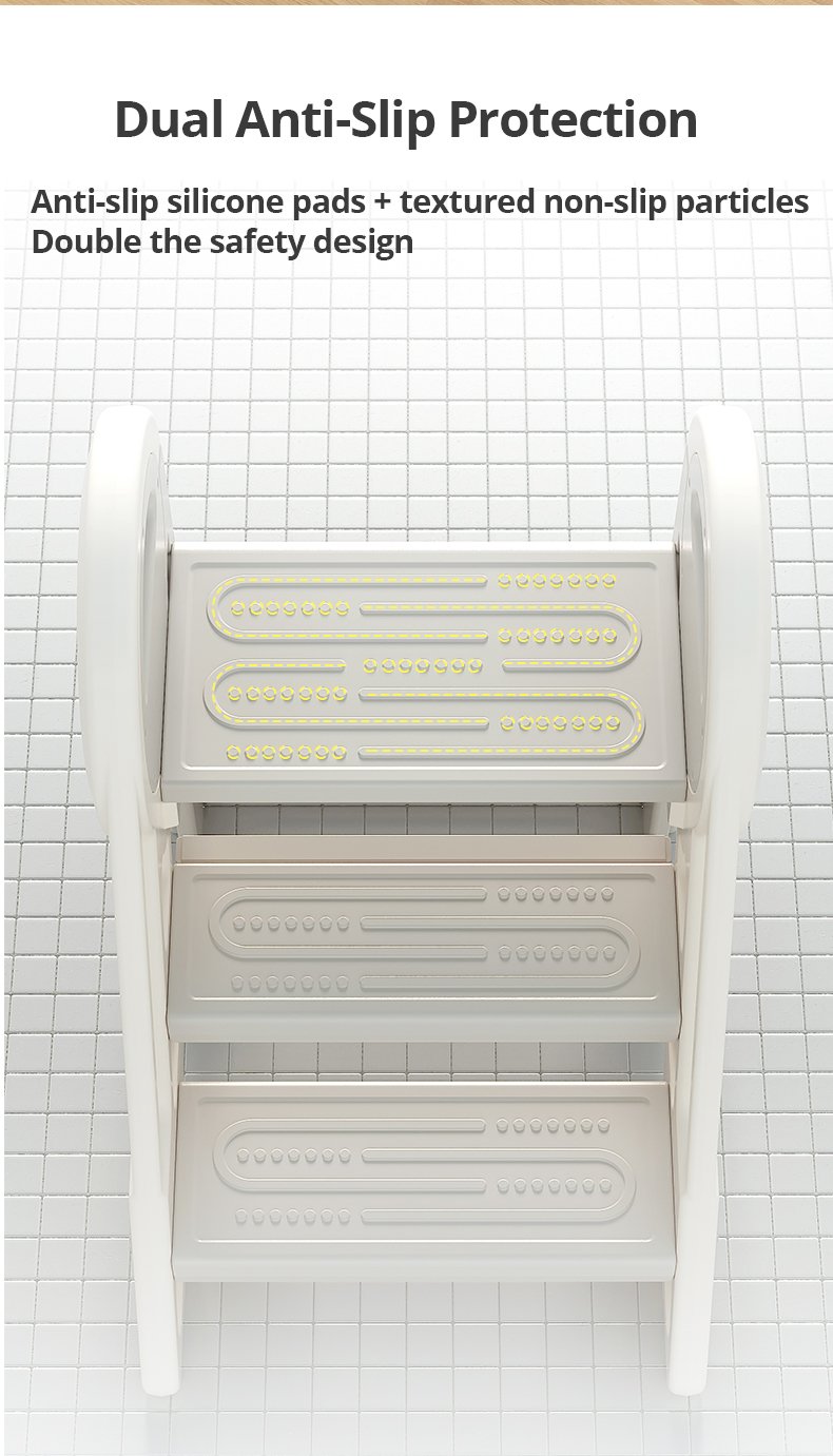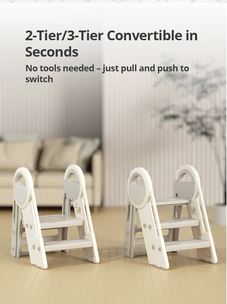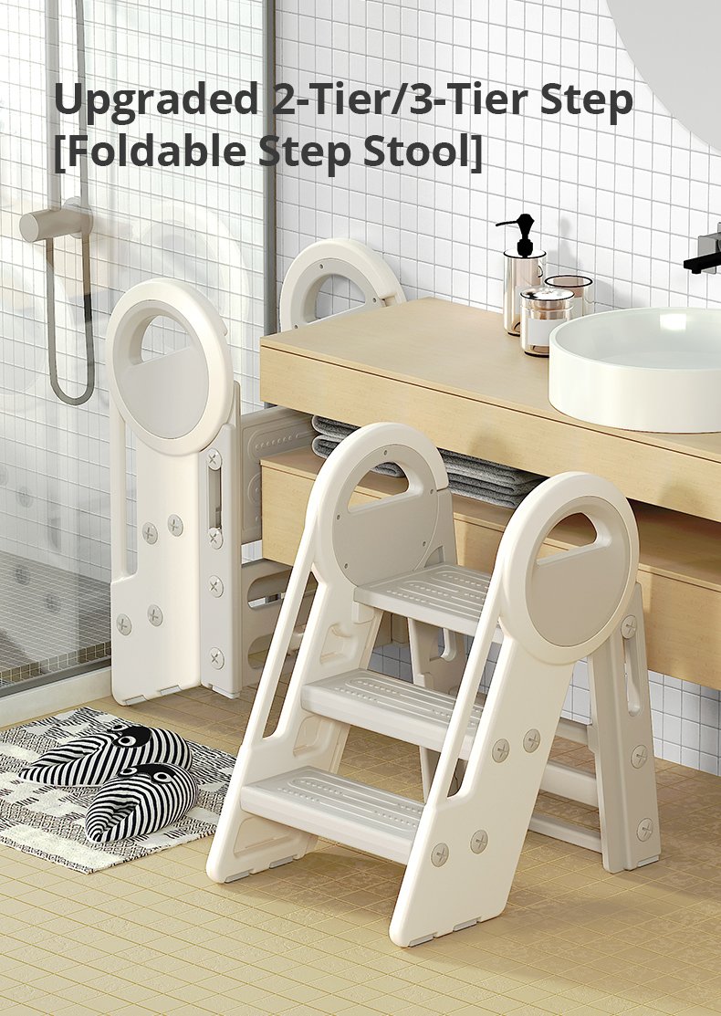 Toddler Step Stool Ladder – Foldable 2-3 Tier with Guardrails for Bathroom/Kitchen (Ages 1-6)